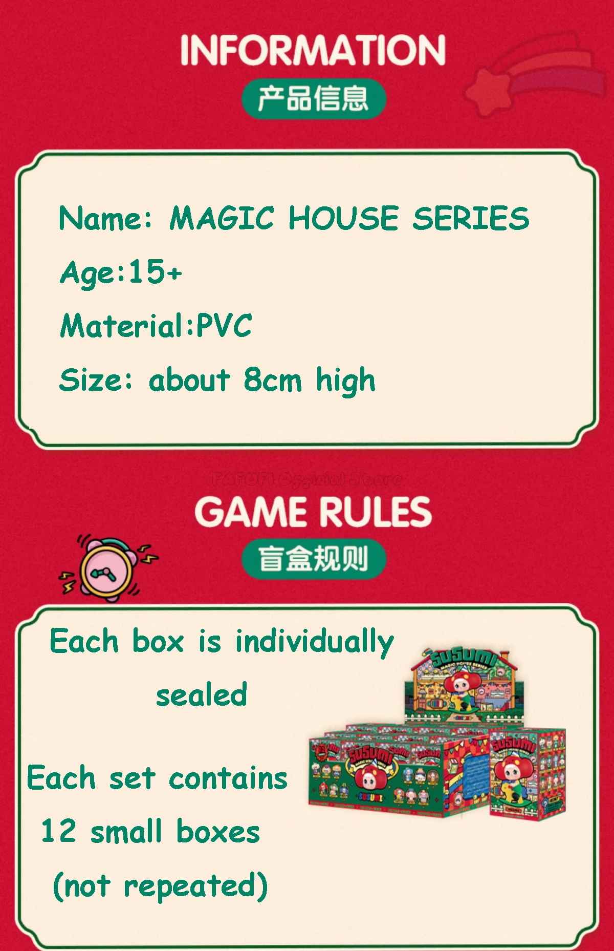 🎁 Blind Box Mystery — each sealed box contains one random Magic House figure.